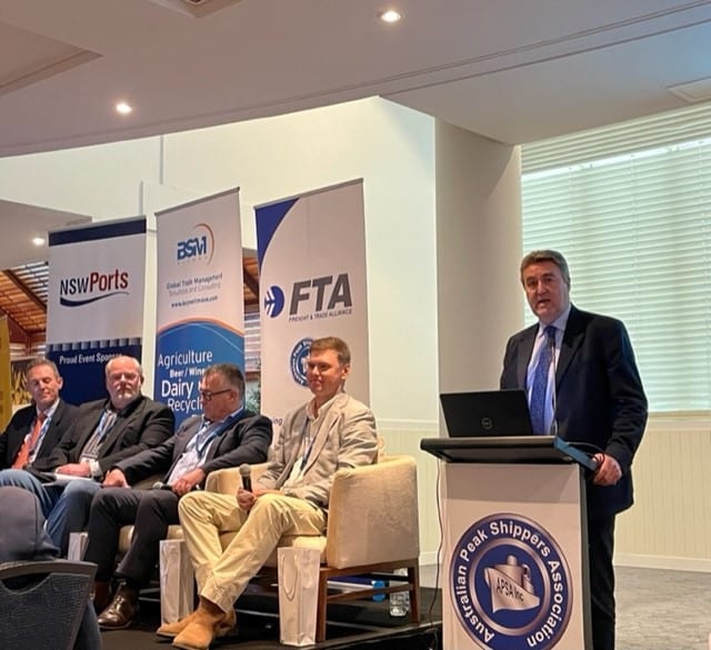 The second session, Ports and Shipping, hosted speakers from NSW Ports, ANL/CMA-CGM, APSA, GrainCorp, and National Freight & Supply chain Strategy/DSV to discuss whether market forces will deliver intermodal, port, and shipping capacity to meet the needs of exporters. Discussed here was the huge number of agricultural commodities that are exported from the region. With the images of yellow canola fields in our mind’s eye, we were not surprised to hear that there are significant issues in the market with bumper grain, cotton, and canola crops with a lack of container supply and infrastructure to meet the demand. It was a sobering look into the issues that our agricultural exporters and service providers face with these commodities only being suitable for 20’ containers and, with Australia being an island nation (and predominantly importing in 40’ containers), there is a massive container imbalance issue which will be the forefront of discussions for many years to come.